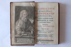 HIPPOCRATE, [ALMELOVEEN (Théodore Jansson van)] : « Hippocratis Aphorismi, variorum Auctorum, maxime Hippocratis & Celsi, Locis Parallelis Illustrati, subjiciuntur celsi sententiae...» Argentorati (Strasbourg) Apud Amandum König 1756.