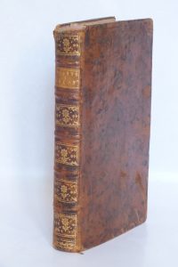In-8. 2 vignettes gravées par HÉRISSET. 6 planches repliées in fine dont celle célèbre de l’orang-outang. Pleine basane marbrée de l’époque (un peu frottée). Dos à nerfs orné de motifs floraux avec pièce de titre (coiffe supérieure rognée).