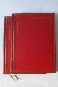 2 volumes in-folio (tome I : États-Majors, Écoles, Infanterie, Cavalerie ; tome II : Armes spéciales, Corps Indigènes, Corps Auxiliaires, Marine). 346 gravures dont 60 hors-texte en couleurs d’après DETAILLE. Plein chagrin rouge. Décor d’encadrement de filets dorés sur les plats. Dos à faux nerfs orné. Tranches à la feuille d’or. Gardes marbrées.