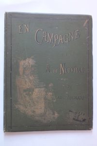 In-folio illustré d’après les tableaux et dessins de A.DE NEUVILLE. Pleine percaline verte de l’éditeur par ENGEL RELIEUR (ors un peu passés). Coiffes émoussées. Coins usés.