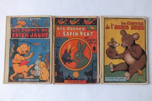 « Les contes du chien jaune. » 1930 ; « Les contes du Lapin vert. » 1927 (coloriages) ; « Les contes de l’ours brun. » 1933.