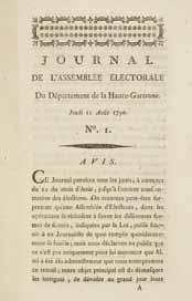 Toulouse - Révolution Journal de l’assemblée électorale du Département de la Haute-Garonne. Jeudi 12 août 1790. N° I. - Dimanche 22 août 1790. Numéro Ii (onze), inattendu.