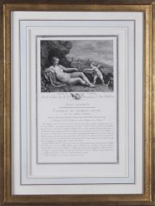Deux eaux-fortes, avec titre et texte dans le bas, 41 x 27 chacune. Très fraîches. «De la Galerie de S.A.S Monseigneur le Duc d’Orléans». Sous verre et passe-partout, dans des cadres dorés soignés. Jacques Palme, peintre italien né à Farinatta en 1540 et mort à Venise en 1588. Titres : Vénus et l’amour, et Vénus qui se peigne.