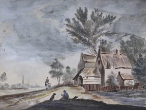 ANONYME XIXème. Deux paysages animés.