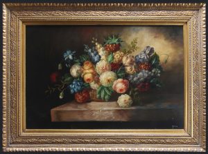 Huile sur panneau de bois, 61 x 91. Signature non déterminée en bas à droite. Dans un cadre orné doré.