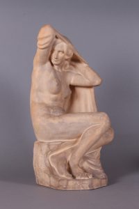 Statue en terre cuite. Hauteur : 54 cm. Signée à la terrasse «Etienne Nangels». En belle condition.