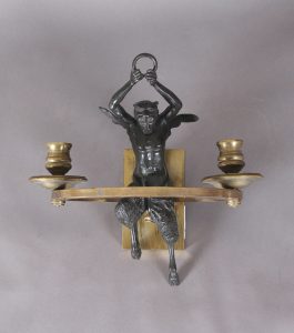 [APPLIQUE MURALE]. Applique en bronze ornée d’un faune.