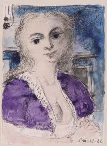 Paul DELVAUX. Jeune femme en buste. 1966.