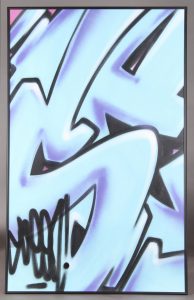 Acrylique et spray sur papier, 100 x 60. Signé en bas à gauche et contresigné au verso. Sous verre, dans un cadre noir. Né en 1981 dans le Bronx, Richard Mirando est une des icônes américaines du mouvement graffiti. En 1981, il expose aux côtés d’Andy Warhol, Keith Haring et Basquiat à l’exposition «New York, New Wave» au PS1 de New York.