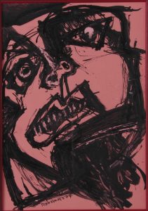 Dessin original à l’encre sur papier rose 35 x 24. Daté et signé en bas à gauche. Sous verre et passe-partout, dans un cadre noir. En bonne condition.
