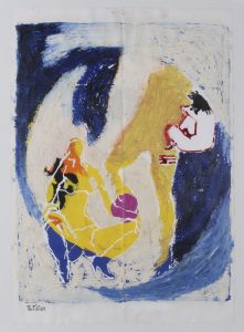 Huile sur papier, 62 x 42,5. Signée en bas à gauche. Sous verre, dans un cadre blanc en aluminium.