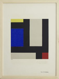 Sérigraphie, 63 x 48. Justifiée «163 / 300» en bas à gauche. Signée «Nelly Van Doesburg», précédé de l’annotation «pour Théo Van Doesburg» en bas à droite. Cette planche est titrée de l'album "Art d'Aujourd'hui, maïtres de l'art abstrait"