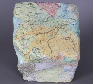 Pavé de rue emballé dans une carte de géographie. Signé. En bon état.