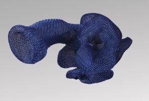 Sculpture métallique, en treillis métallique bleu, 45 x 25. En très belle condition.