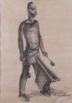 Auguste MAMBOUR. Images Noires. Le Joueur de tam-tam. Lithographie, 69 x 49. Exemplaire sur Arches. Sous verre et passe-partout, dans un cadre doré. Trace de mouillure au coin inf. droit.