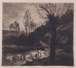 Eau-forte, 22 x 25. Epreuve sur Arches 34 x 48. Léger brunissement aux marges, et quelques épidermures. Titrée et signée dans la plaque, et signature au crayon dans la marge. Sous plexi, cadre de bois naturel.