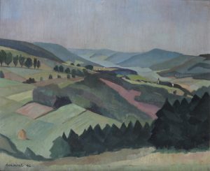 Huile sur panneau, 50 x 61. Signée et datée «Darimont. 42» en bas à gauche. Dans un cadre doré (petits accidents au seul cadre). Peintre et graveur expressionniste, né à Liège en 1903 (Arto).