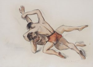 Aquarelle, 38 x 52. Signée «P. Daxhelet» en bas à droite. Frais. Sous verre et passe-partout blanc, cadre brun foncé.