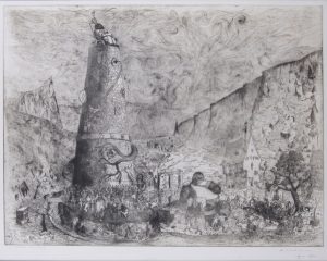 Eau-forte, 59 x 79. Titrée et signée et datée 1939 dans la marge en dessous. Sous verre et passe-partout, dans un cadre brun foncé.
