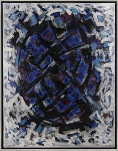 Huile sur panneau, 119,5 x 93,5. Signée et datée «L. Plomteux. 68» en bas à droite. Dans un cadre argenté. En belle condition. Œuvre abstraite.
