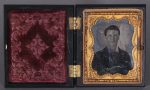 On y joint le portrait d’un homme en ambrotype, 5 x 4. Dans une union case 8,5 x 6, décorée. Oxydation au portrait.
