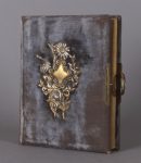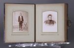 64 photographies, formats de 10 x 7 à 16 x 11. En partie souvenirs mortuaires. Famille Lawarrée, Thiry, Borlon, Brouwers, Piérard, Lisen, Burton, Flohimont, etc. Dans un album à encoches de velours gris-bleu à décor et fermoir doré, tranches dorées. Ensemble en bonne condition, sauf petits accidents.