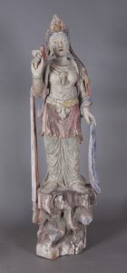 Statue, bois polychrome. Hauteur : 104 cm. En bonne condition (quelques crevasses principalement dans le bas).