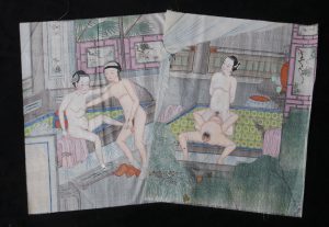 [CHINE. ESTAMPES EROTIQUES]. Ensemble de 6 estampes chinoises.