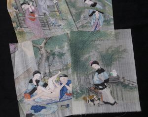 [CHINE. ESTAMPES EROTIQUES]. Ensemble de 7 estampes chinoises.