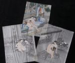 Impression sur soie. Formats max. 26 x 22. Sauf des taches brunâtres sporadiques, fraîches. Sujets érotiques pour la plupart.