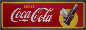 COCA COLA. Plaque émaillée publicitaire horizontale.