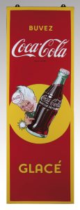 COCA COLA. Plaque émaillée publicitaire verticale.