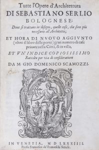 SERLIO (Sebastiano). Tutte l’opere d’architettura dove si trattano in designo, quelle cose, che sono piu necessarie all’architetto;… et un indice copiosissimo raccolto per via di considerationi Domenico Scamozzi.