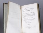 2 vol. in-8 (21 x 13), demi-veau glacé noir et petits coins de l’époque, dos orné au petit fer, pièce de titre maroquin brun, étui moderne soigné, (8)-xvi-459 et 447 p. Le second tome comprend, à la fin, l’Atlas pour servir à l’Essai […] sur l’Indoustan…, composé d’une carte et de 14 planches à déplier. L’auteur se présentait comme «ancien Officier de Génie, de la Société Asiatique de Colcotta, et de plusieurs autres Sociétés Littéraires et Savantes». Bel exemplaire.