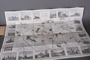 Carte gravée coloriée, 60 x 87. En encadrement, vingt petites vues gravées des curiosités proposées, de Versailles à l’Ermitage de Rousseau et la Chapelle de Grétry à Montmorency, en passant par Saint-Denis, Saint-Cloud et Malmaison. En belle condition.