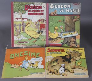 RABIER. Sidonie la radoteuse. Paris, Garnier, album in-8 à l’italienne. En couleurs; RABIER. Gédéon se marie. Paris, Garnier, album in-4 en couleurs; RABIER. Gédéon, Alfred et compagnie. Paris, Garnier, album in-4 en couleurs; RABIER. Onésime. Paris, Garnier, album in-8 à l’italienne. En couleurs.