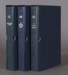 In-8 (25 x 16), en feuilles sous emboîtage bleu d’éditeur. Un des 50 exemplaires de tête numérotés de l’édition originale (n° 13). Bel exemplaire.