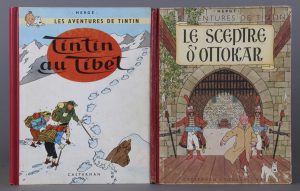 HERGÉ. Les Aventures de Tintin. Le Sceptre d’Ottokar. Édition Casterman, 1947. Dos rouge. 4ème plat B1. Cartonnage lég. frotté et petits défauts (marges lég. salies,…)