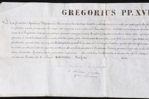 [NAMUR]. Pape Grégoire XVI. Envoi du pape Grégoire XVI à un prêtre namurois, Georges Bertrang, avec la signature autographe de l’évêque de Namur Nicolas-Joseph, 1840.