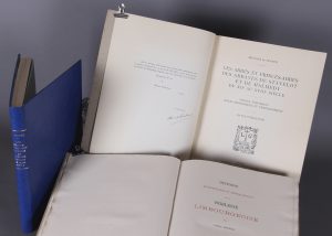 HUBERT (Eugène). Les Eglises protestantes du duché de Limbourg pendant le XVIIIème siècle. Etude d’histoire politique et religieuse. Bruxelles, J. Lebègue et Cie, 1908. In-4 (29 x 22), Pleine toile bleue, titre doré au dos (reliure moderne). Envoi autographe de l’auteur à la garde. Bel exemplaire.