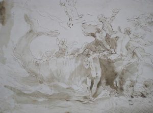 [Suiveur de LAFAGE, Raymond de (1656-1684)].- Scène à l'antique avec baleine échouée, baigneurs et putti.