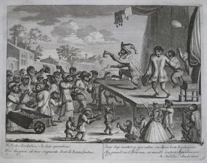 2 Hollandse "apenspelen" met 2-regelige Nederlandse versregels, begin 18de eeuw.