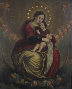 [Attribué à SCHAEPKENS, Théodore (Maastricht, 1810-1883, Bruxelles)].- La Vierge et l'Enfant assis sur un croissant de lune (Immaculée Conception).