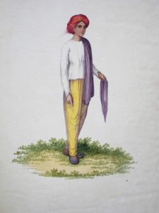 [Suiveur ou entourage de SOLVYNS, François Balthazar (1760-1824)].- 11 dessins de costumes indiens en couleur, 19e siècle.