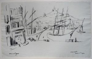 Avec, en plus par rapport aux ex. de tête, un DESSIN ORIGINAL, 20 x 35 cm, sur papier bleu, signé, daté et titré "Vue port Marseille".