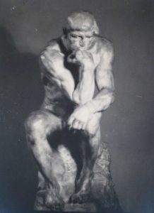 S.l. n. d. 10 photographies en noir : portrait de Rodin, 9 x 6 cm, collé en plein sur le plat sup. de la couv. + 9 photographies, 10 x 9 cm, collées par le bord sup. sur ff. de vergé brun clair. Sous chemise en rabat en papier gris-noir orné sur le plat sup. d'une photo.