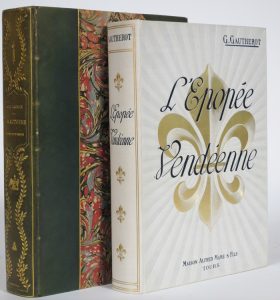 JOINT : GAUTHEROT, Gust.- L'épopée vendéenne (1789-1796), ouvr. illustré de 125 gravures dont 10 héliogr. et 1 carte en couleurs. Tours, Mame, s.d., gr. in-4° rel. d'éd. en cuir blanc décoré doré (n.c.).