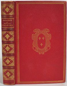 Paris, Plon, Nourrit et Cie, ( 1887). In-12° : [6]-xv-262-[1] pp. (qqs petites rousseurs). Rel. de l'époque : plein maroquin rouge, armoiries dorées au centre des plats cernées d'un triple filet doré, dos fleuronné doré à nerfs, double filet doré sur les coupes, dentelle dorée sur les remplis, gardes de soies rouge, tr. dorées (petites épidermures). L'auteure, Berthe Graux, signe une dédicace à "Votre Altesse Royale, comme hommage du plus profond respect d'une Française à une Princesse française en exil". Rappelons qu'en 1866 paraissait la loi d'exil bannissant du sol français les chefs de familles royales et impériales ayant régné sur la France, elle ne fut abrogée qu'après la 2e guerre mondiale. Beau témoignage historique dans une belle reliure armoriée.