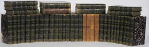 Paris, Firmin Didot, 1835 [- 1878]. 69 vol. in-8° (n.c., rouss., défauts, us., etc.). Rel. d'édition de l'époque : demi-chagrin bleu vert ou bleu (sauf Asie : demi-chagrin aubergine), plats de papier marbré, dos à nerfs (coiffes, mors, coins et coupes frottés, qqs vol. avec épidermures ou pet. manques de cuir; Asie : dos passés, qqs plats fort abîmés avec manques). COLLECTION COMPLÈTE de cet important ouvrage divisé en 5 sections : Europe (42 vol. y compris 4 vol. traitant de l'Allemagne, 3 vol. d'atlas pour la France et 1 vol. sur les provinces danubiennes et roumaines), Afrique (7 vol.), Asie (12 vol.), Amérique (5 vol.), Océanie (3 vol.). Illustré de plus de 3.000 gravures sur acier représentant en majeure partie des paysages panoramiques ou des vues pittoresques, mais aussi des fêtes et cérémonies, des costumes, monuments, etc.