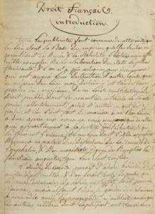d’Auriac, plus de 500 ff. in-4, à l’encre sur papier, relié à l’époque en un vol. demi-basane usagée. Œuvre inédite du dernier représentant de la célèbre dynastie de juristes toulousains, très représentative de l’effort d’adaptation des anciennes loix aux injonctions du nouveau code civil promulgué en 1804. Ce même J. B. Furgole avait publié en 1810 à Paris « le Nouveau Furgole ou traité des testaments… mis en rapport avec les principes du Code Napoléon ». Le présent cours, réparti sur quatre années d’enseignement, est resté pour sa plus grande part inédit.